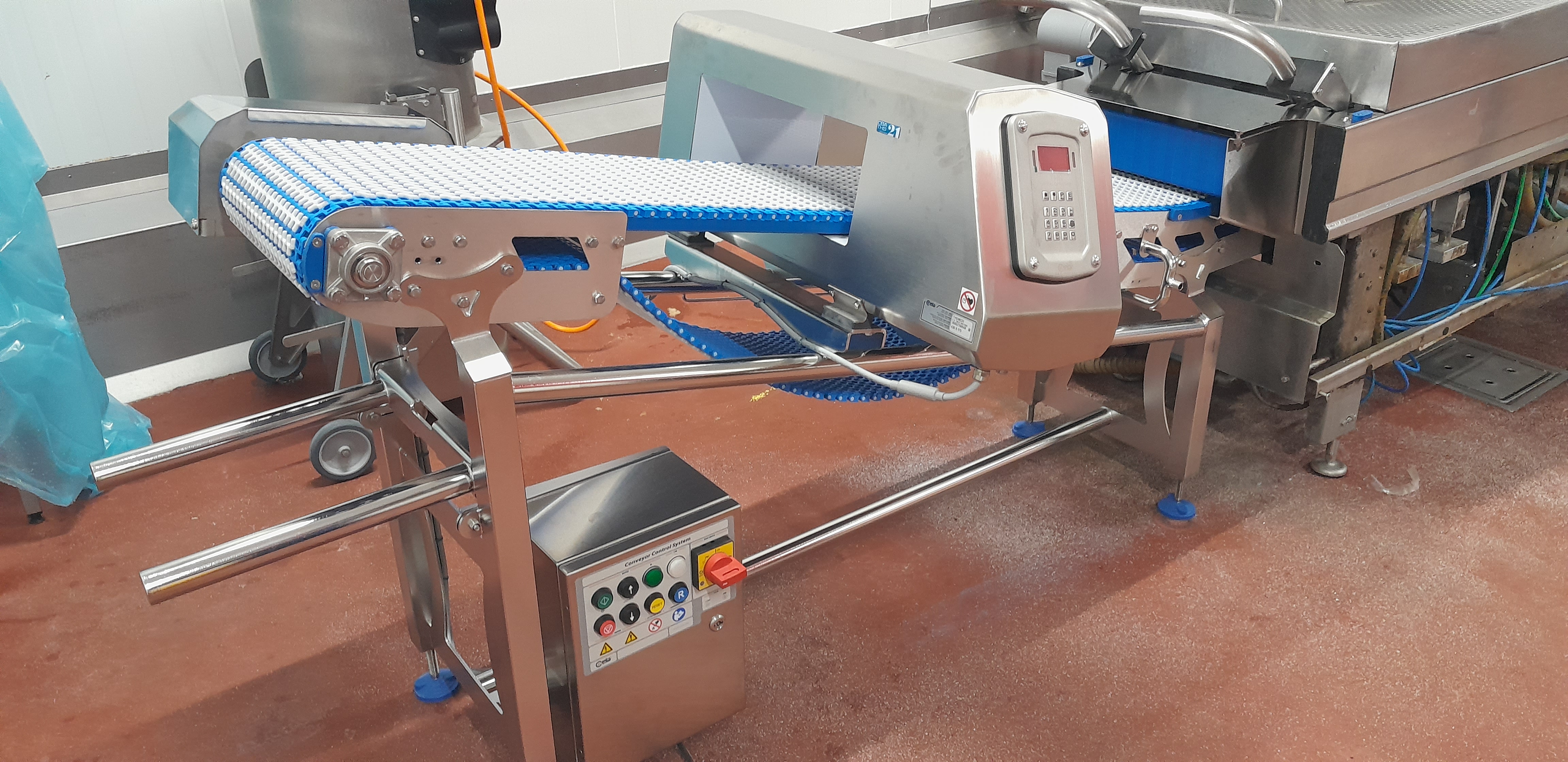 Après analyse de l'installation et validation du cahier des charges, nous avons conçu et fabriqué un convoyeur adapté à la sortie de l'operculeuse existante, intégrant nativement un détecteur de métaux en ligne. La hauteur de convoyage a été définie pour correspondre à une ergonomie optimale du poste opérateur. L'ensemble a été fabriqué dans notre atelier en Vendée, testé, puis installé et mis en service sur site.